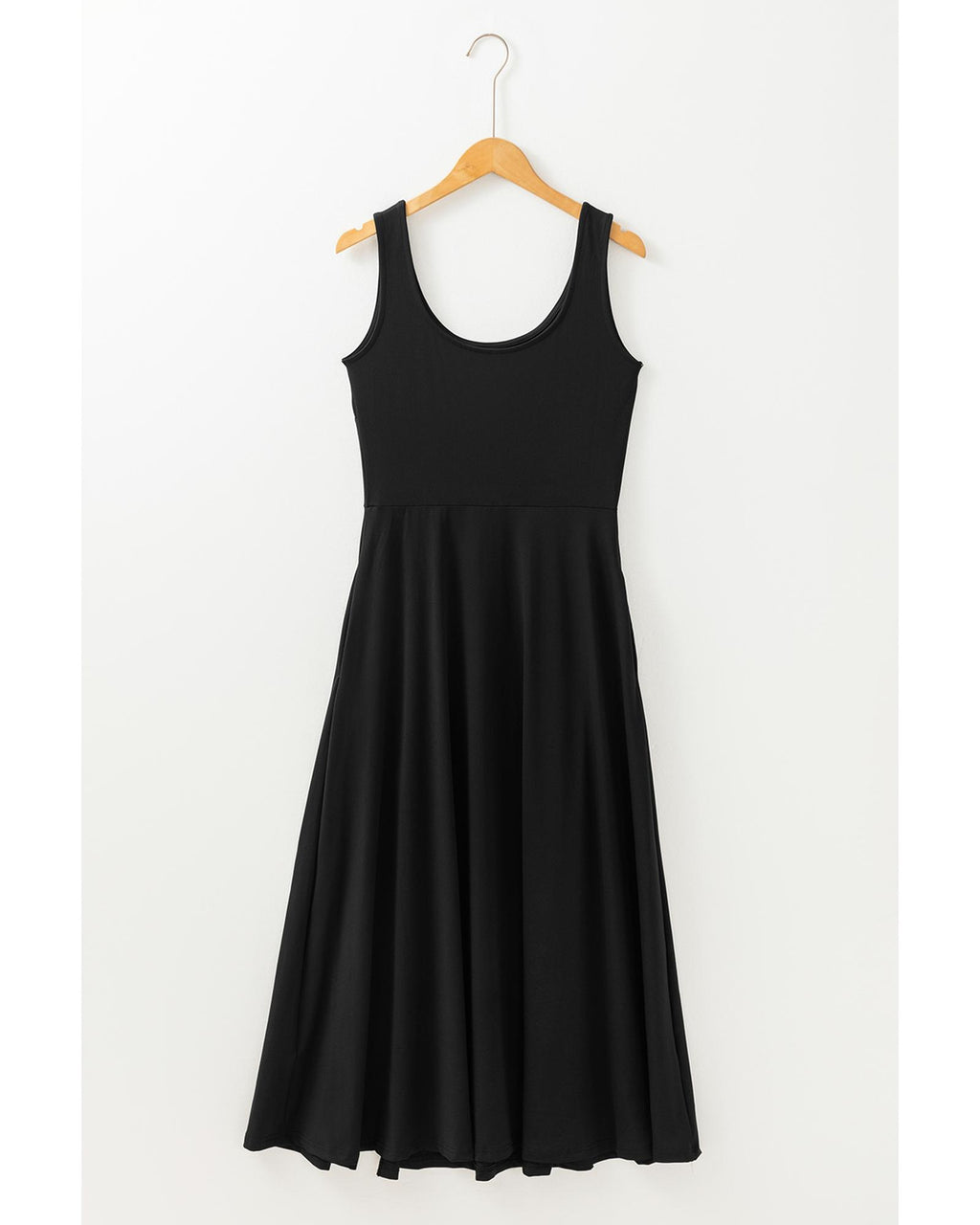 Black Sleeveless Scoop Neck Flared Split Midi Dress - XL