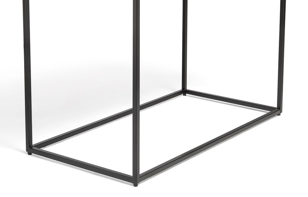 The Black Sofa Side Table with Textured Wood Top effortlessly brings Urban style to your space with its Contemporary look and feel. The Large surface top provides plenty of space for your essentials as well as decorative ornaments while the Narrow stature allows for the Table to be easily accommodated in all spaces. The Textured Wood Top is a unique feature that truly amplifies the elegance of this Sofa Side Table. A simple design with an elegant look and feel, this Side Table is ideal for your Living Room, Bedroom and even behind the Sofa providing the perfect height for every reach.