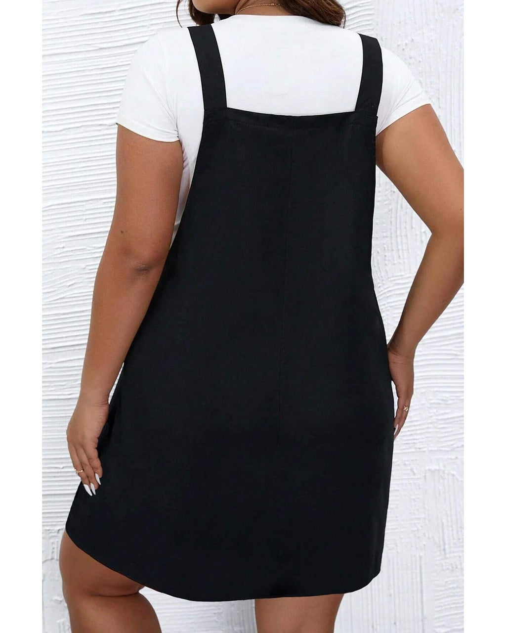 Black Solid Buttoned Straps Plus Size Overall Dress - 2X