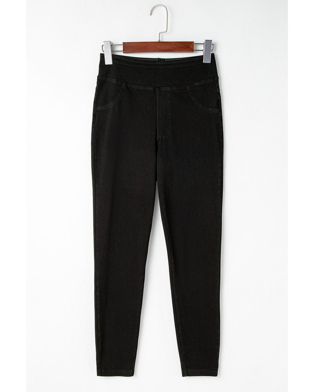 Black Solid Color High Waist Stretchy Slim Fit Jeggings - S
