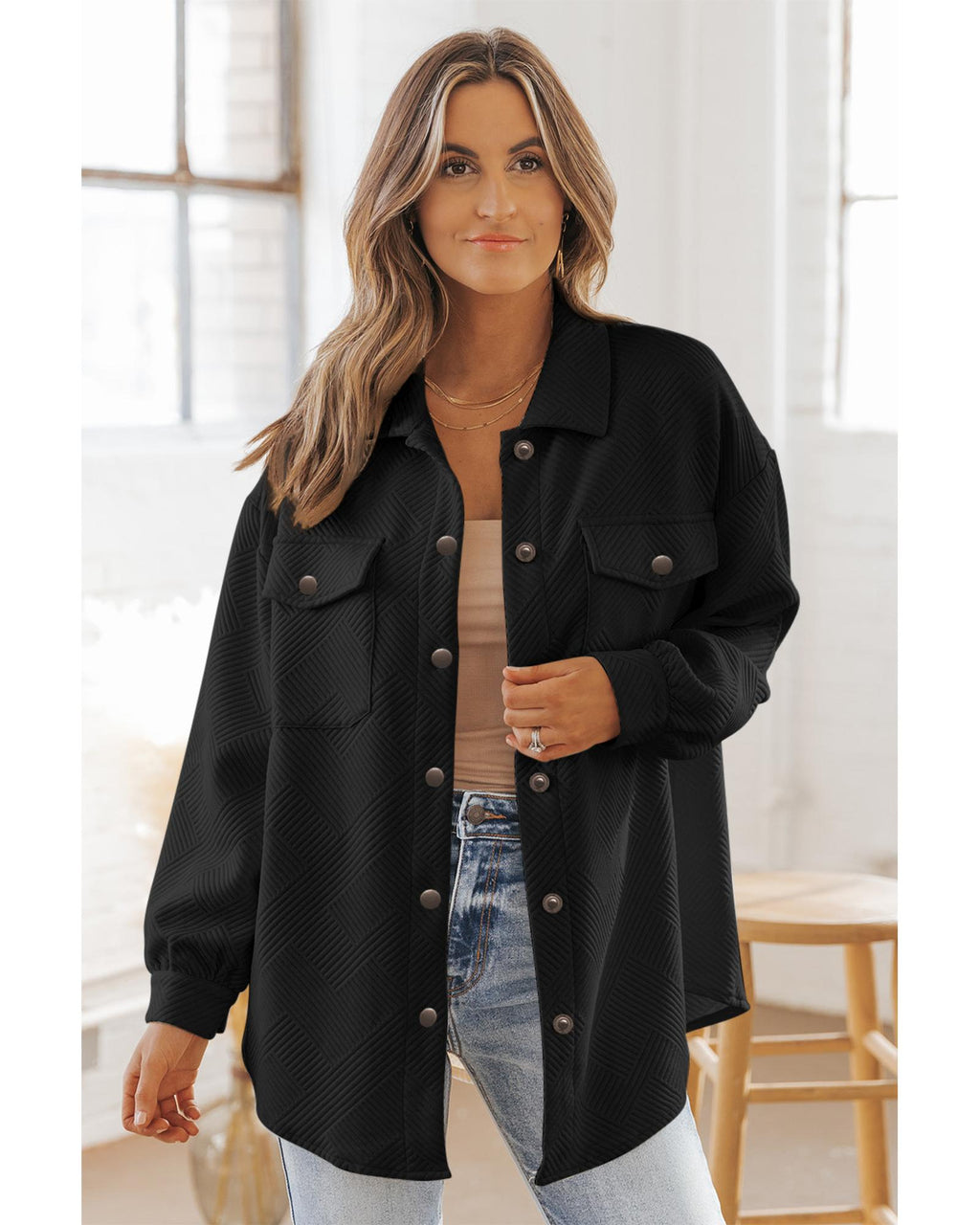 Black Solid Textured Flap Pocket Buttoned Shacket - XL