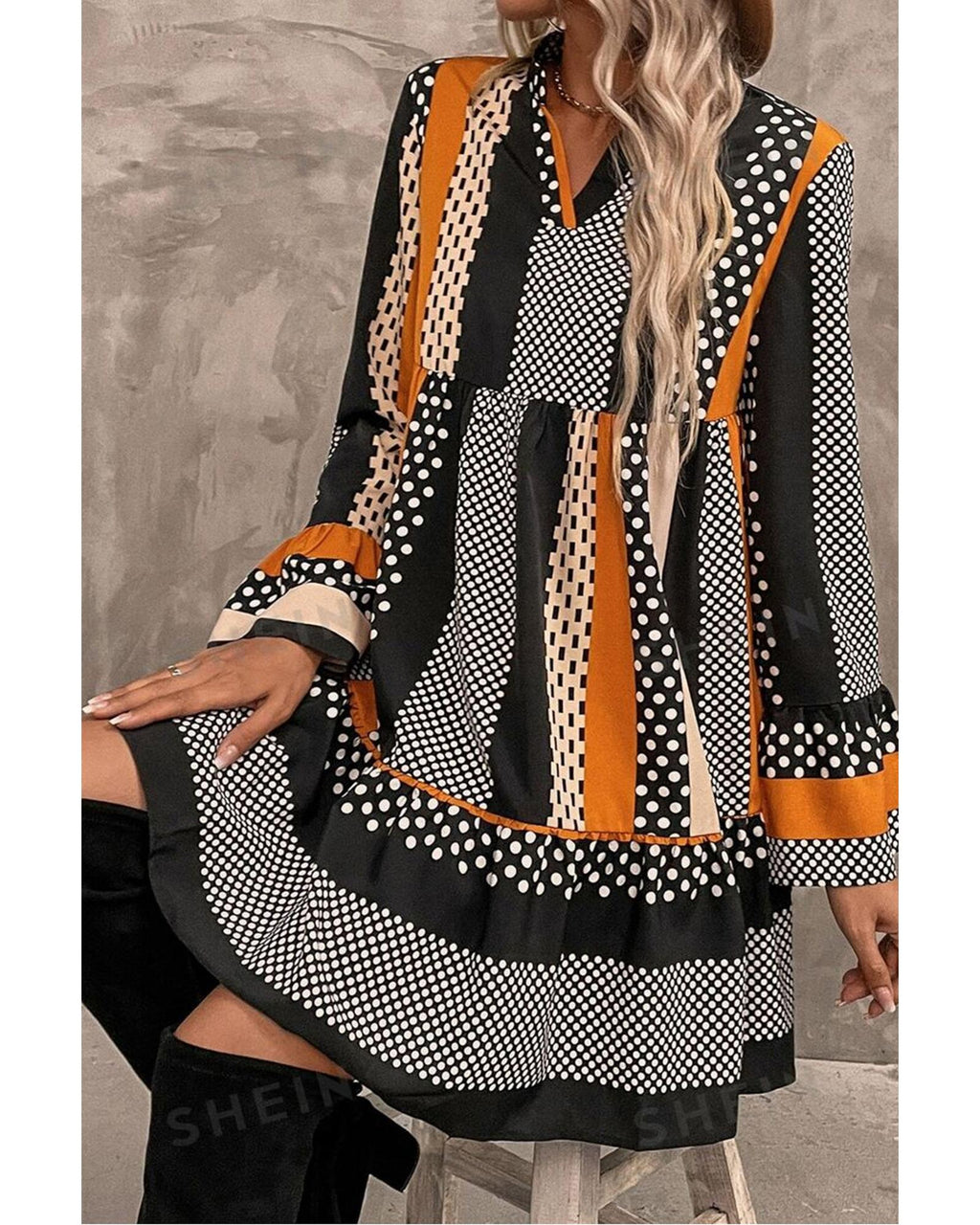 • Black striped polka dot print
