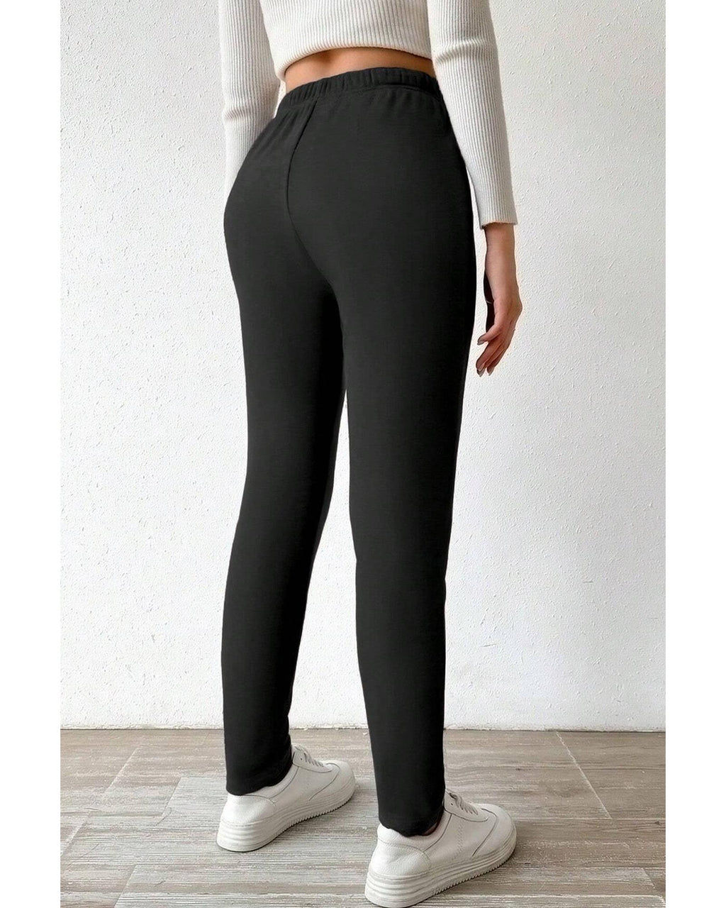 Black Thermal Lined Drawstring High Waist Leggings - M