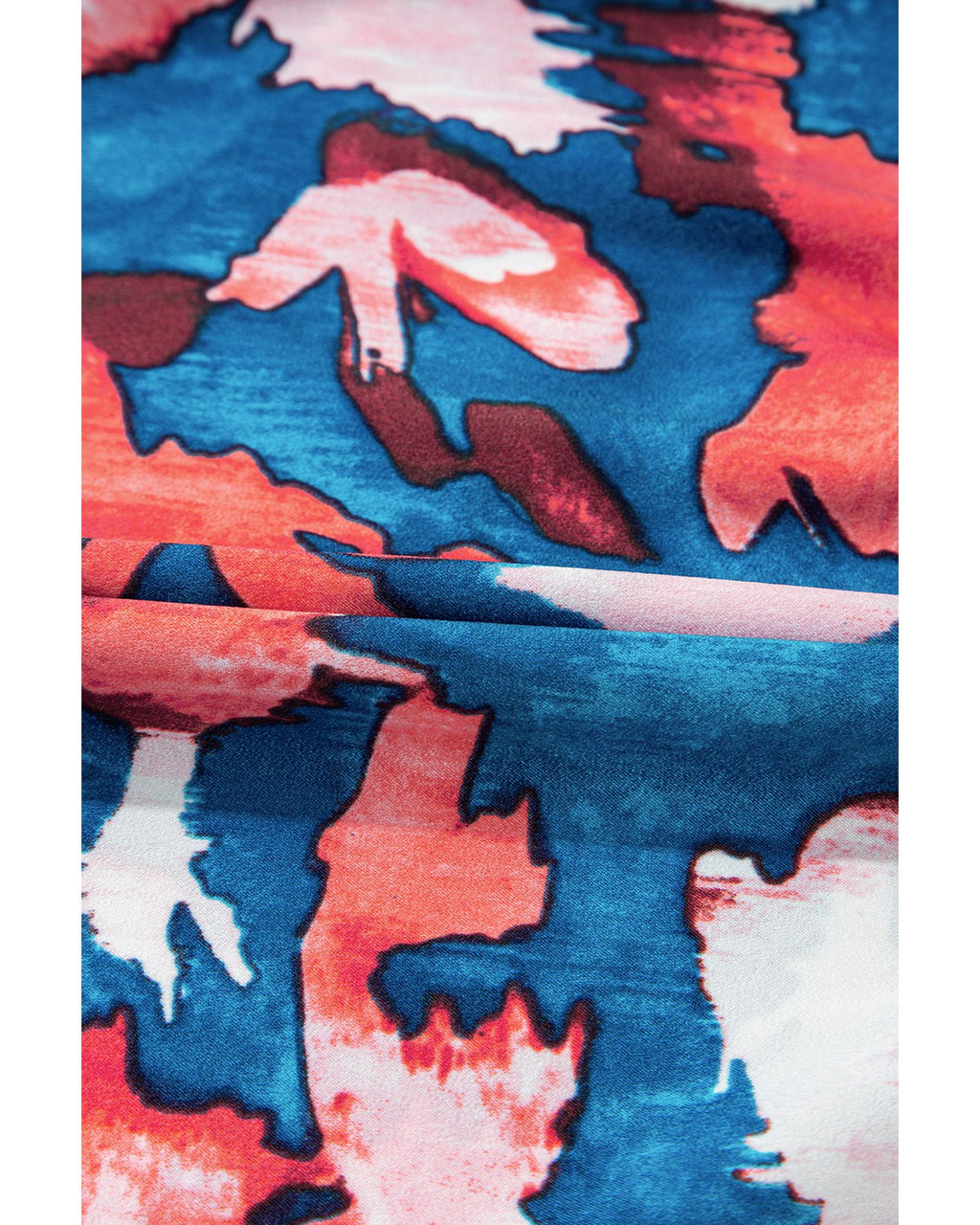 • Abstract print adds a pop of personality Shirred ruffled sleeves create a feminine touch Tiered design for a playful and flattering silhouette Lightweight and flowy fabric Plus size short dress
