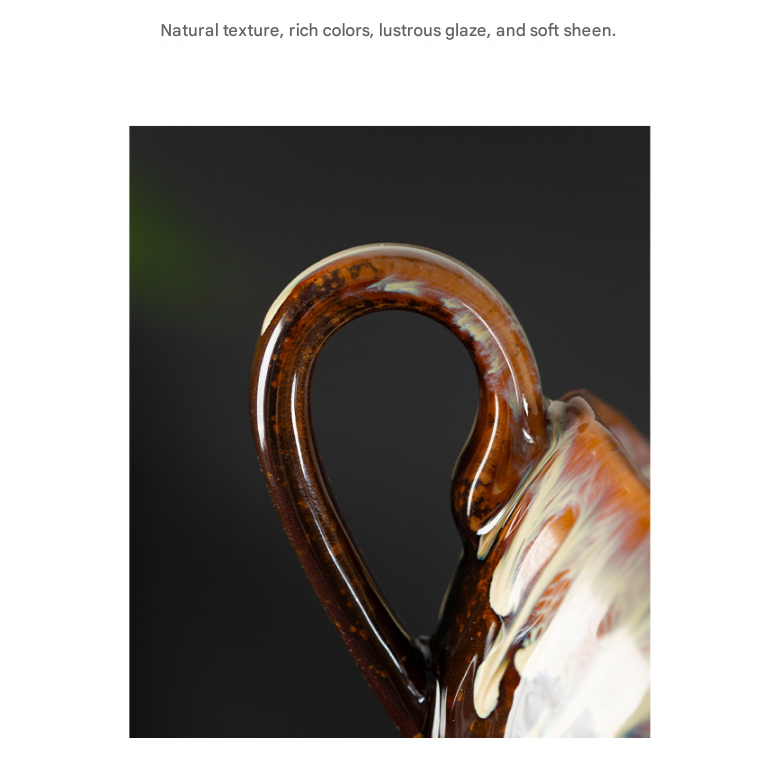 • Unique Kiln-Glazed Finish: Features a mesmerizing "yao bian" glaze where colors spontaneously change during firing, ensuring each cup has a distinctive and artistic pattern.