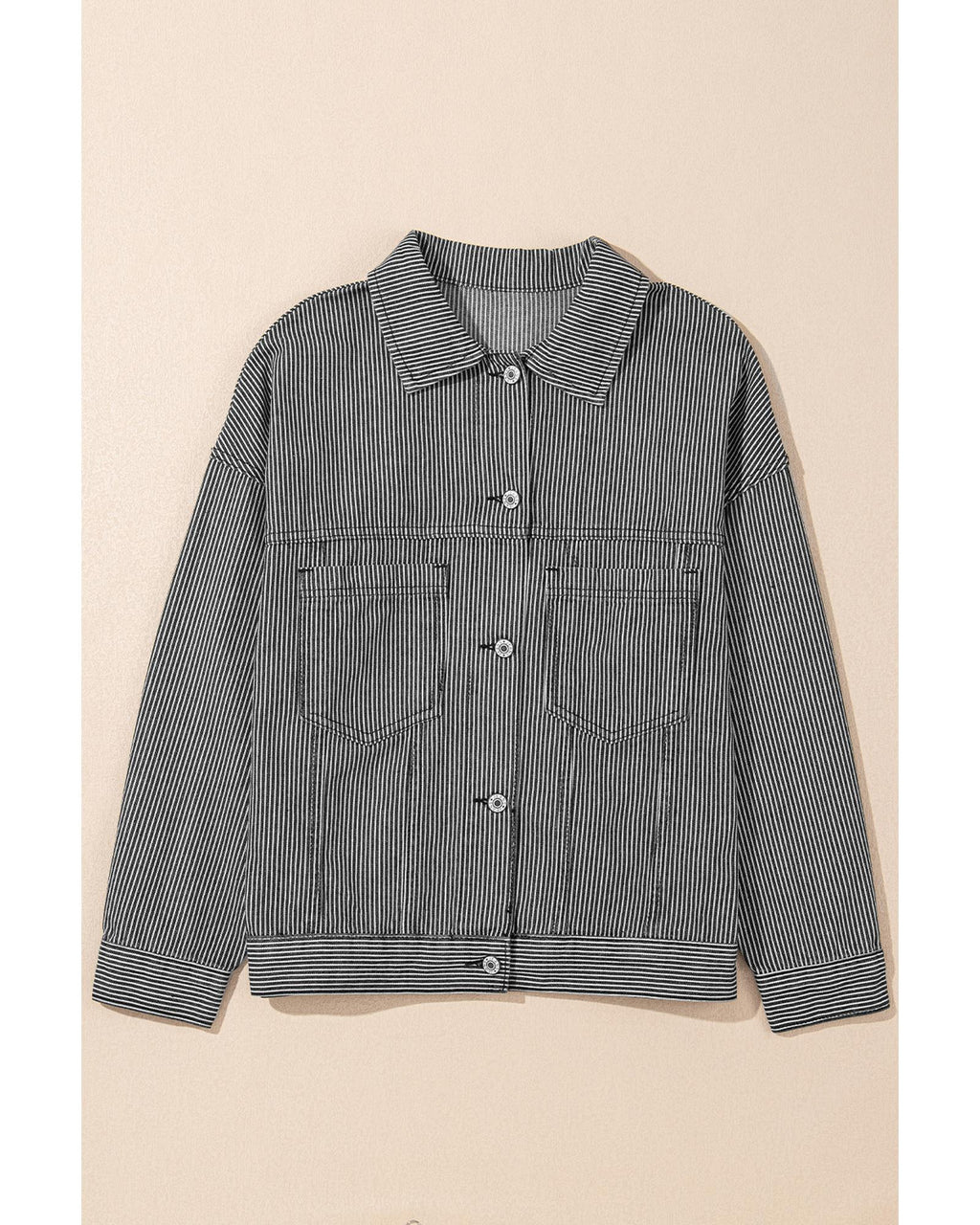 • Blue Stripe Washed Oversize Pocketed Denim Jacket