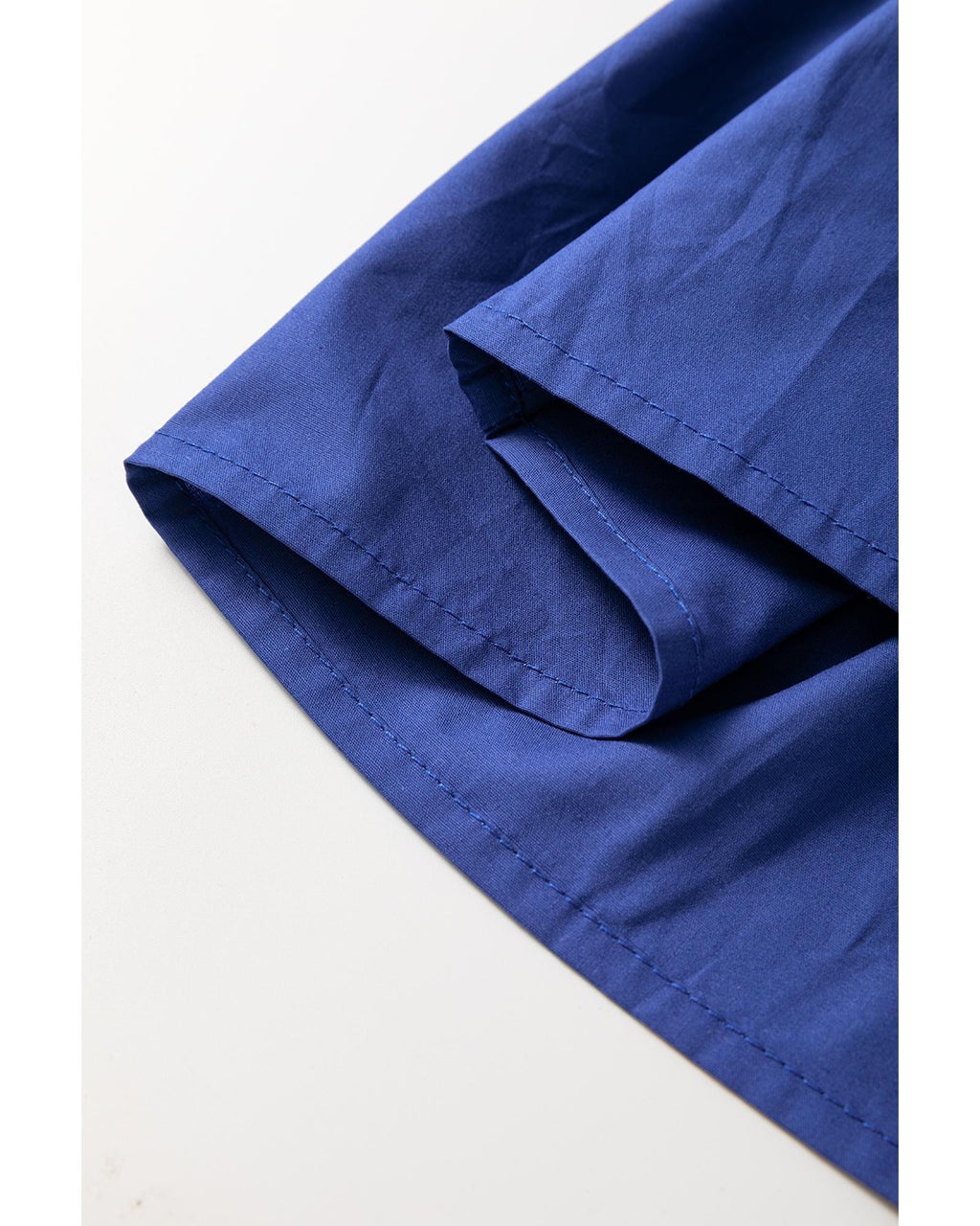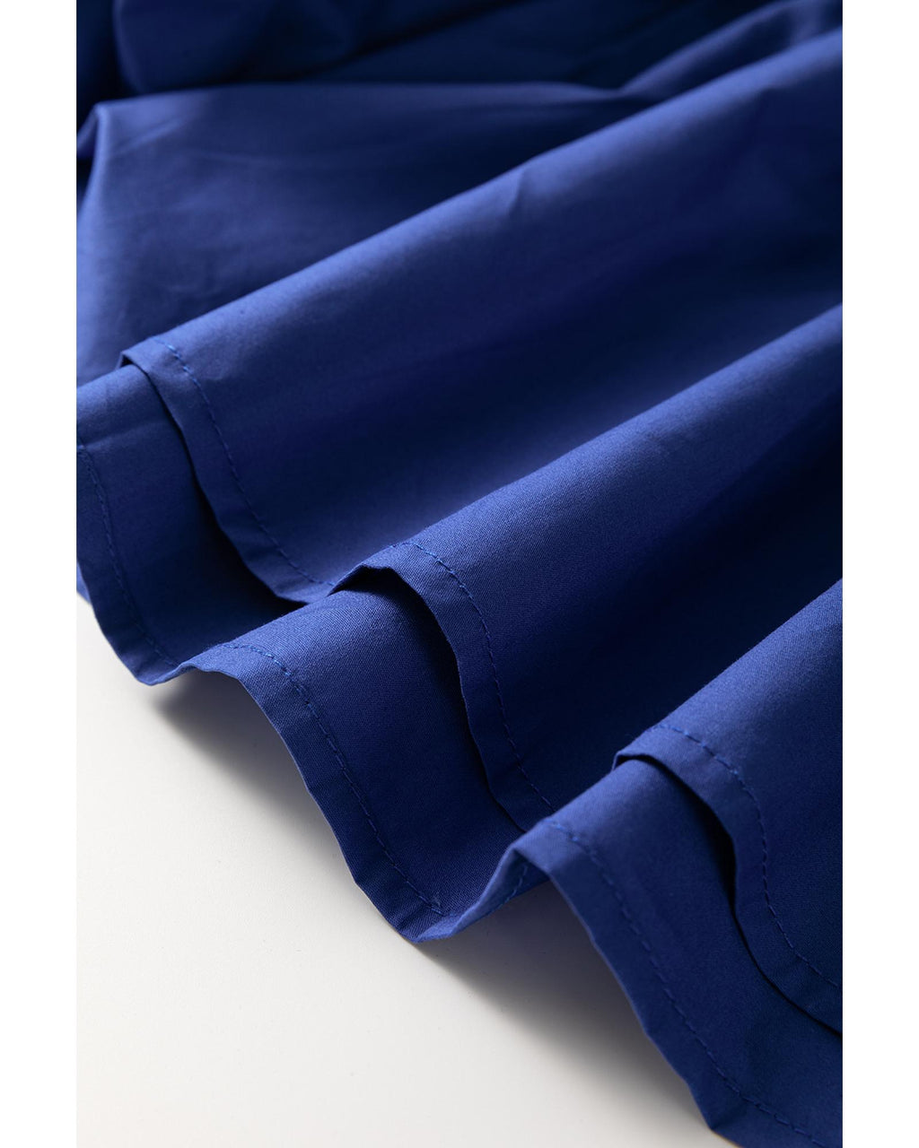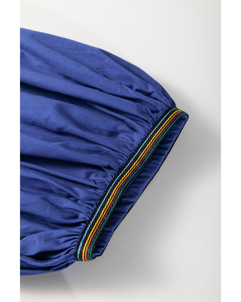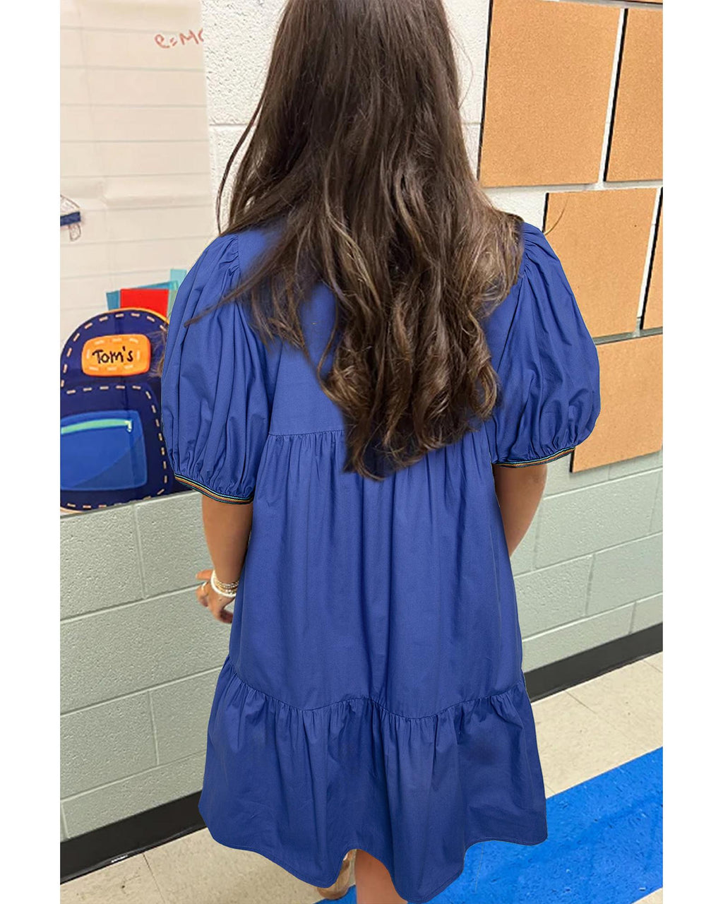 Bluing Colorful Striped Trim Puff Sleeve Pleated Mini Dress - M