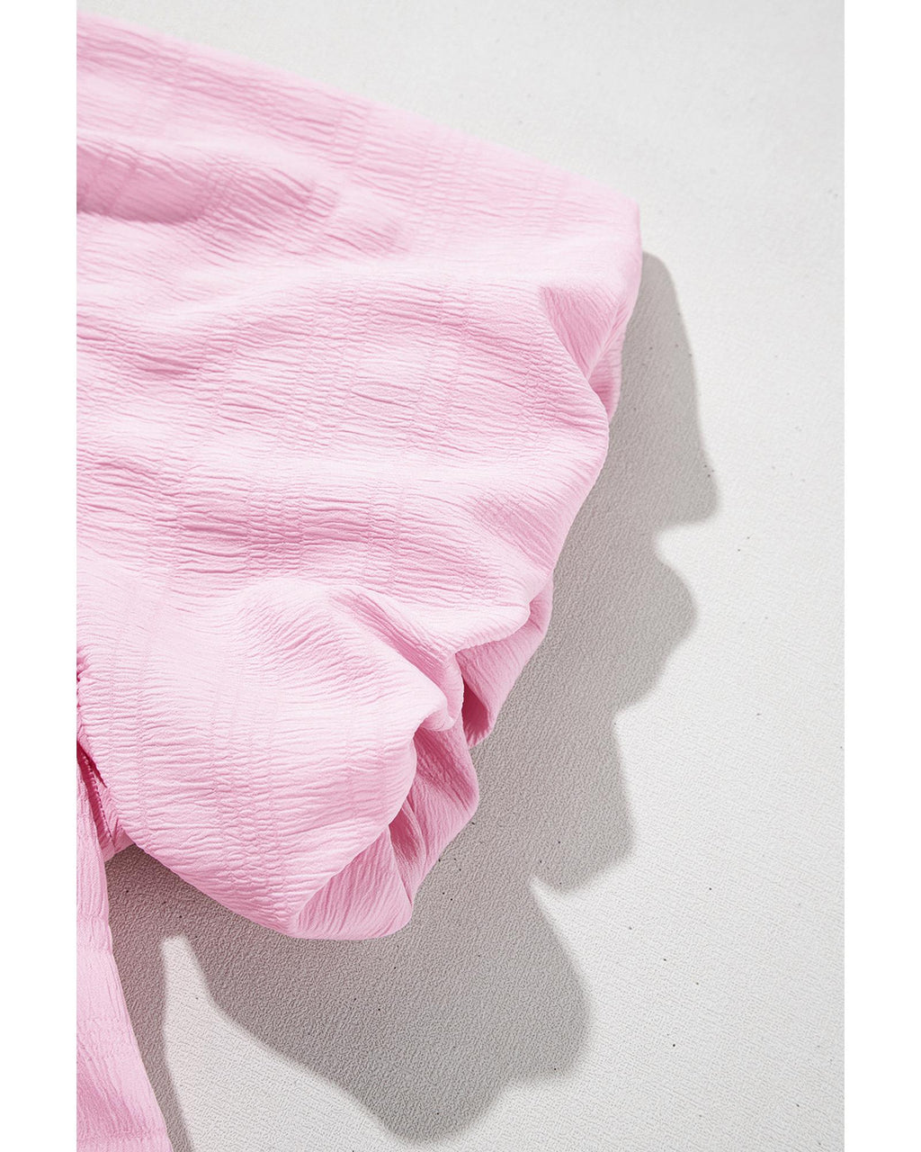 Bonbon Textured Bubble Sleeve High Waist Mini Dress - M
