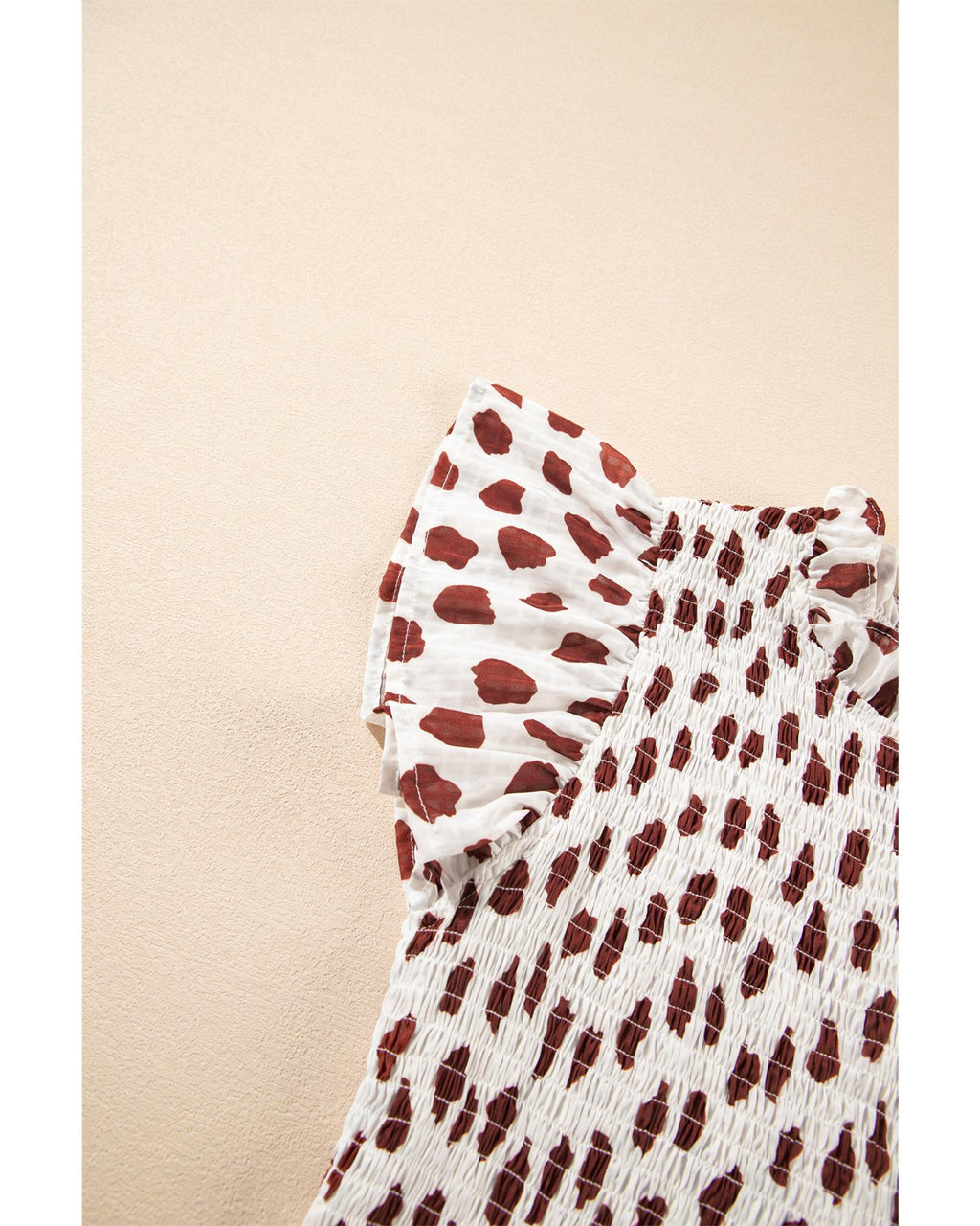 Brown Abstract Printed Flutter Sleeve Smocked Bodice Short Dress - XL
