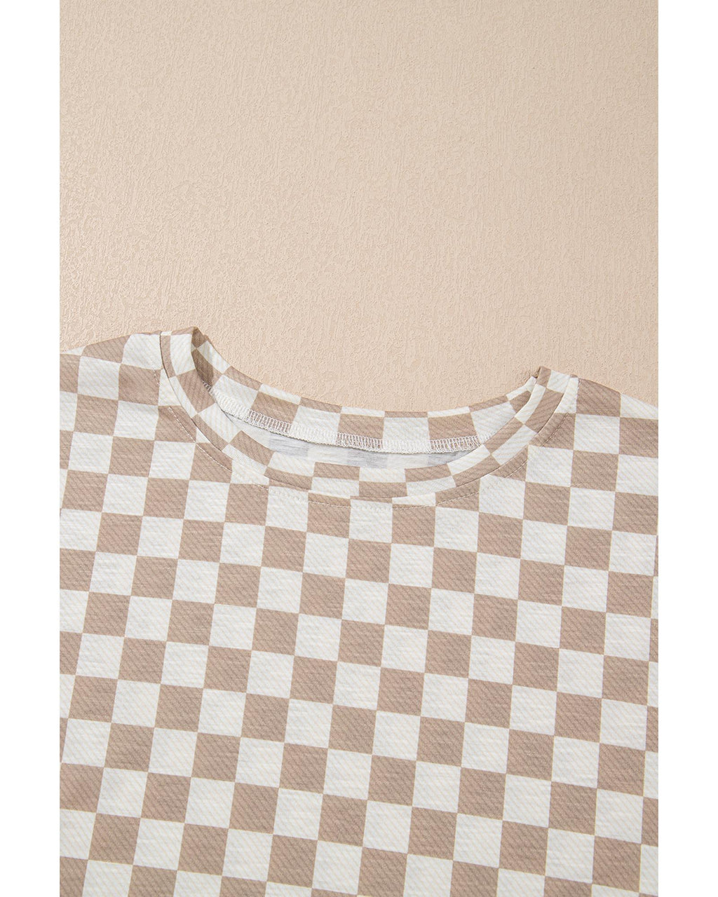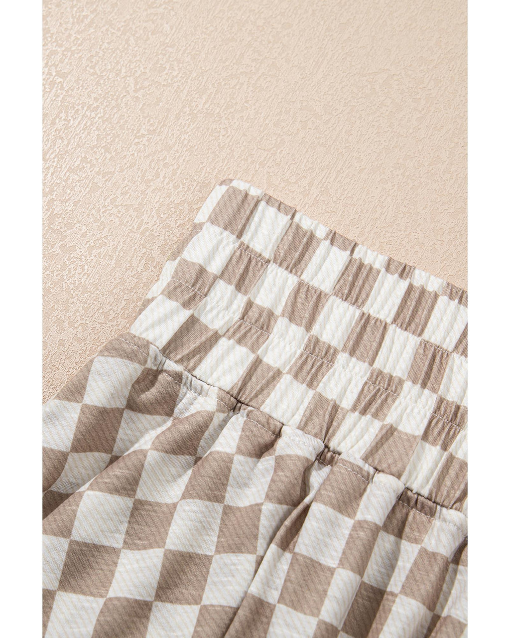Brown Checkerboard T Shirt and High Waist Skorts 2 Piece Outfit - M