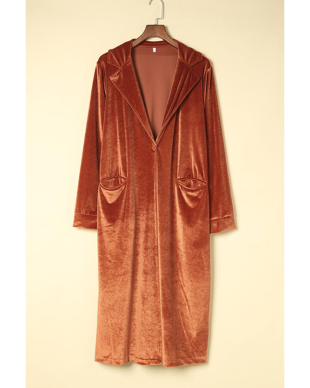 • Luxurious Retro Velvet Long Sleeve Pocket Coat