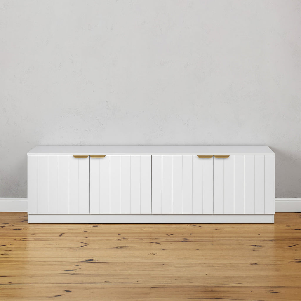 The Bucharest TV Unit is made in Europe with Hafele components and Swiss Krono boards, it combines superior quality and stylish design for your entertainment storage needs. Available in a range of drawer front designs and high quality solid brass handle choices.