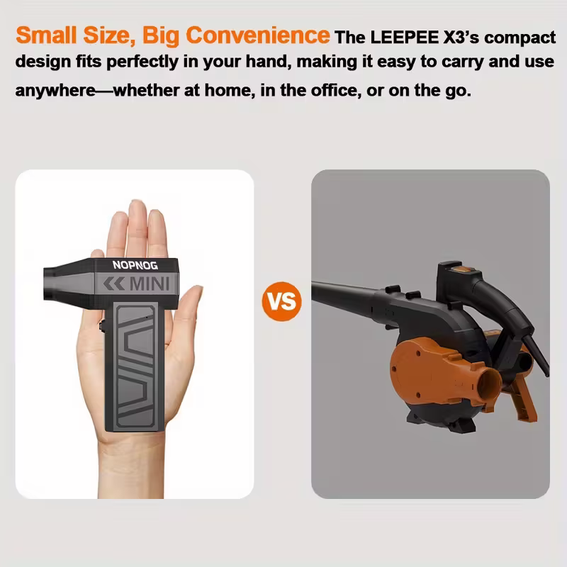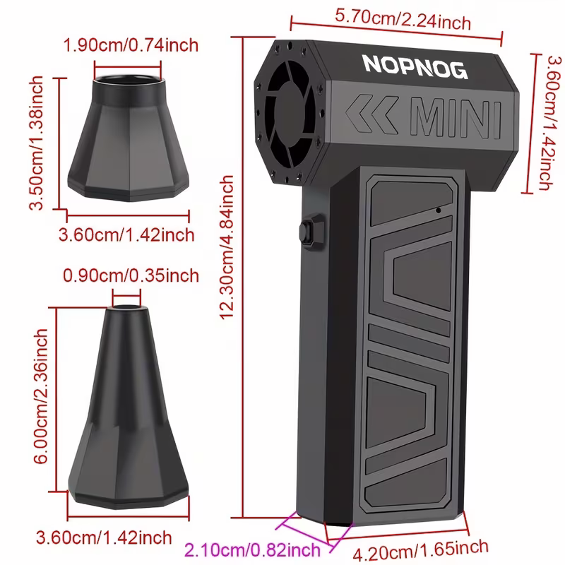 This turbocharged jet wireless snow blower is equipped with a high-speed brushless motor that can reach up to 130,000 RPM, delivering a stable and powerful airflow that makes cleaning faster and more efficient. The body is made of lightweight ABS material, which is not tiring to hold for a long time and is suitable for use in various scenarios such as daily life, outdoor and professional environments.