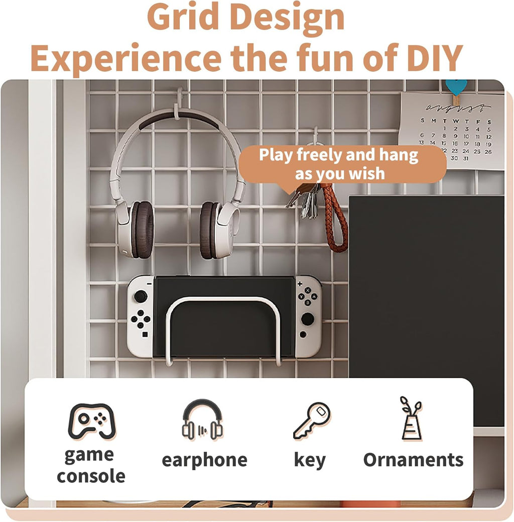 • CUSTOMIZABLE GRID PANEL DISPLAY: Personalize your desk setup with the integrated metal grid panel—perfect for hanging photos, keys, headphones, or decorative items. Includes bonus hooks for flexible organization.