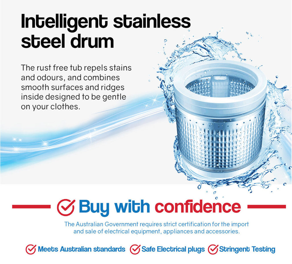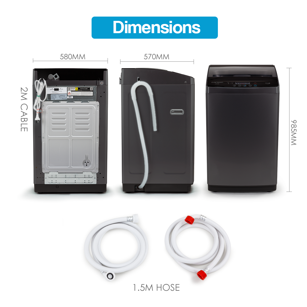 The Carson® 9kg Top Load Washing Machine is a smart and practical investment, combining style, durability and smart functionality. Designed with convenience in mind, the Carson® Washing Machine has a simple yet elegant control panel that’s equipped with an easy to read LED display, giving you total control to achieve the exact variation of wash for any type of garment.