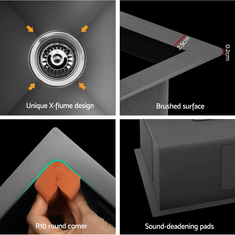 Cefito Kitchen Sink Stainless Steel 81X45CM Single Bowel with Drying Rack Black