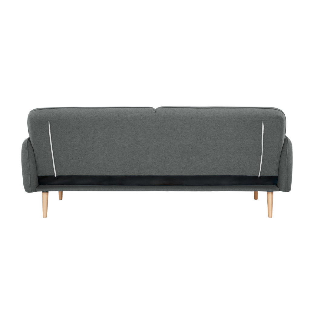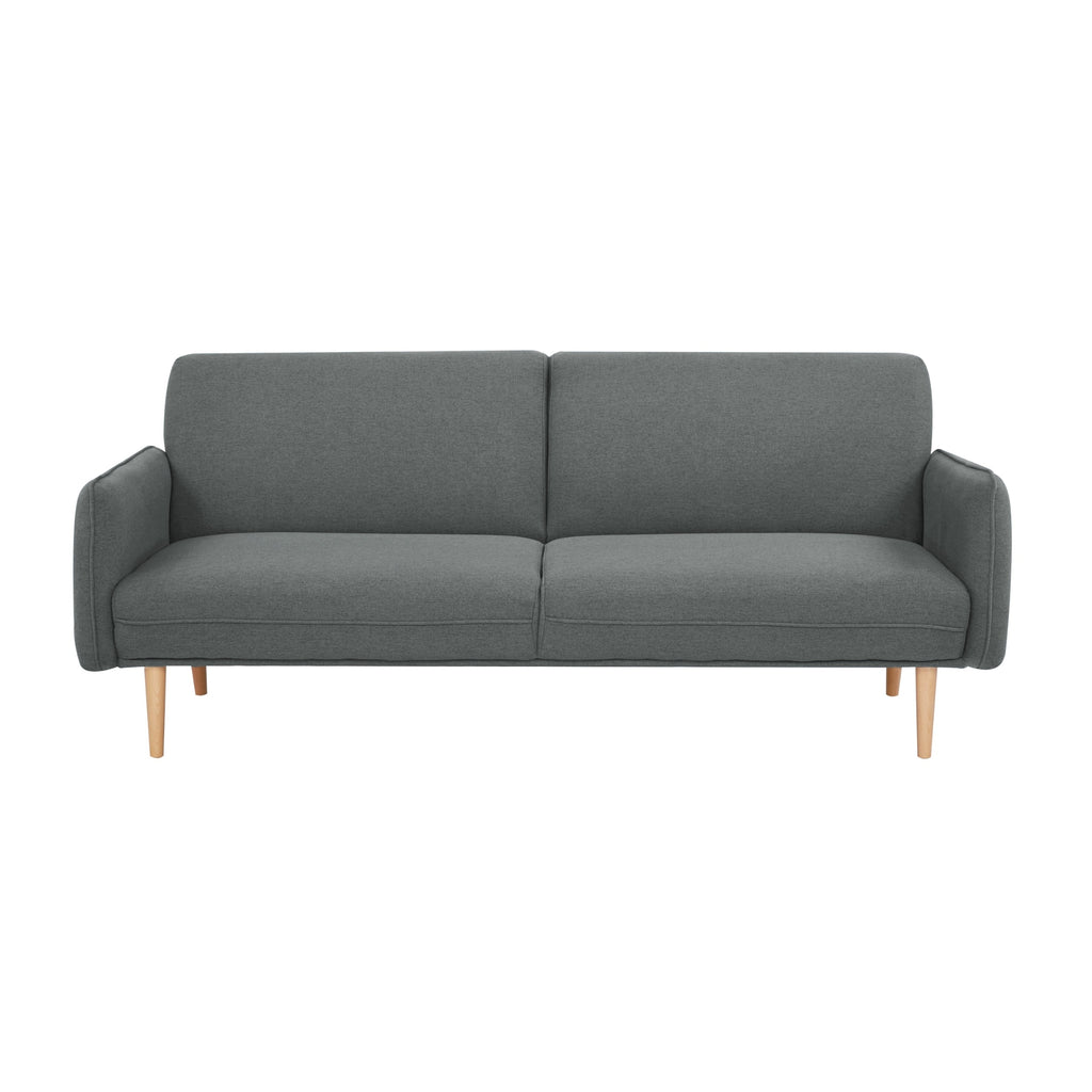 This elegant 3-seater sofa in mid grey is comfortable to the core and also space saving. The Scandinavian-style furniture is upholstered in a plush upholstery made of high-performance 100% polyester. The upholstery has a smooth fit due to the intact tailoring on the frame. The solid pine wood and plywood frame make the sofa light and highly durable. The durable frame with seating support made of thick bonded foam, fabric, and high-tensile S springs ensures heavenly comfort when you relax on it. Tapered wooden legs in nature wood colour give the furniture a super strong base. The sofa is easy to assemble. The long-lasting furniture comes with a 1-year warranty.