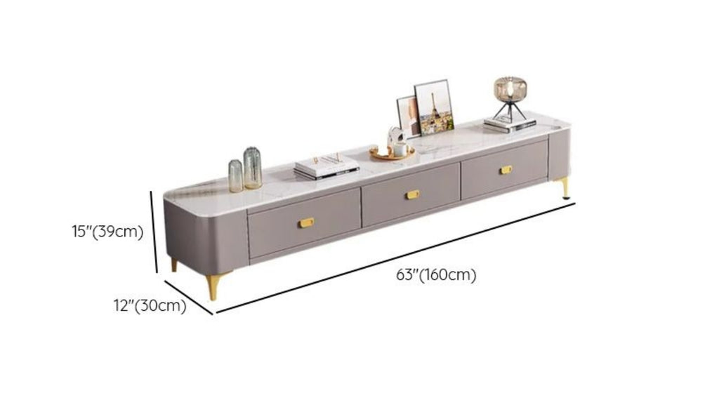 Chalk Sintered Stone TV Stand with Cabinet Storage Design for Drawing Room, 3 Drawers, 160cm