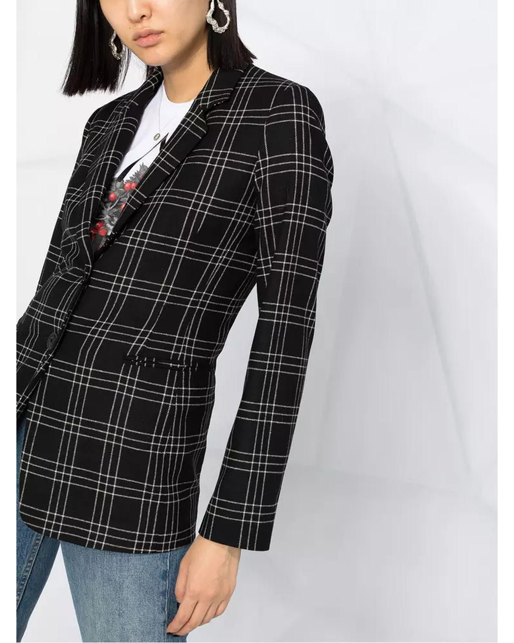 Check Pattern Blazer Jacket with Front Button Closure 44 IT Women