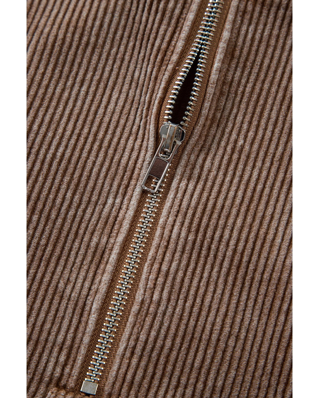 Chestnut Half Zipper Kangaroo Pocket Drawstring Corduroy Hoodie - L