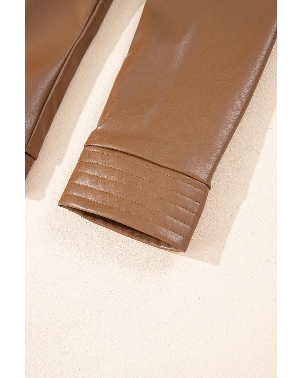 Chestnut Solid Faux Leather Zipper Slim Fit Bomber Jacket - S