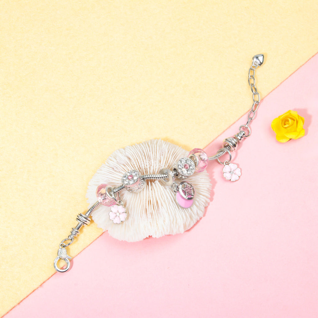 This charming bracelet features pink crystal beads, enamel magnolia flower charms, and a five-pointed star pendant, all designed in a sweet, Chanel-inspired style. Constructed from high-quality alloy with electroplating for durability and a glossy finish, it comes with an adjustable lobster clasp offering six length options (16-21cm) to suit any wrist. The bright pink hues and sparkling details create a fresh, youthful look thats perfect for daily wear, dates, parties, or as a heartfelt gift. Whether youre dressing up or keeping it casual, this bracelet adds a touch of elegance and charm, making it a versatile staple in any jewelry collection.