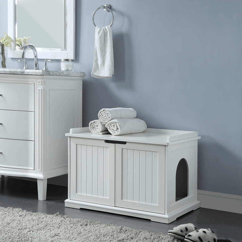 • This enclosed cat litter box is perfect for tucking into corners and closets