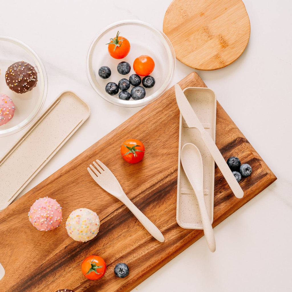 Clevinger Reusable Wheat Straw Fibre Cutlery Set with Case - Beige