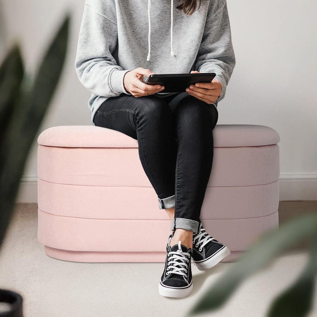 Coffee Table Storage Ottoman - Chenille Fabic Padded Blanket Box Bench CELIA - PINK