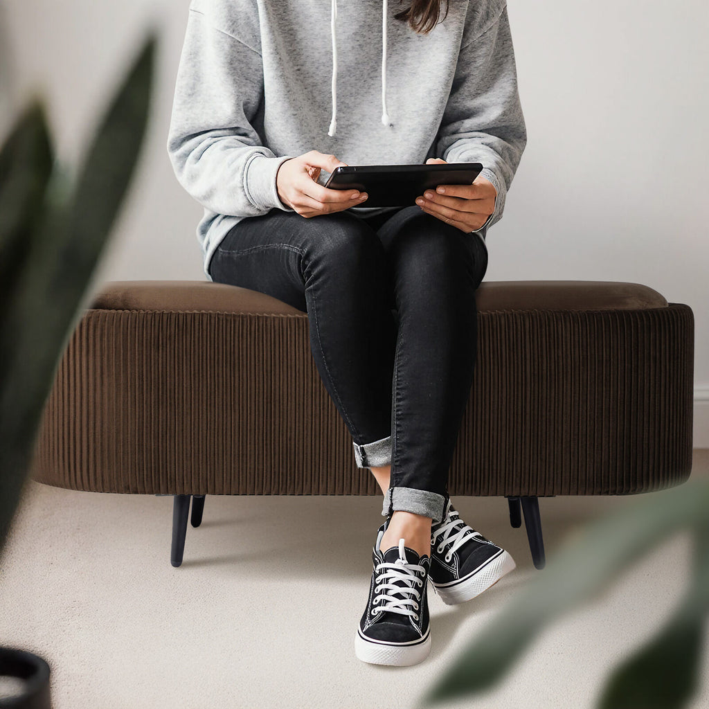 Wrapped in soft velvet and generously cushioned, this storage ottoman is designed for comfort and convenience. Just flip the lid to transform it into a handy tray table, perfect for books, candles, or a relaxed cuppa. Inside, there's spacious storage for throws, toys, or daily essentials.