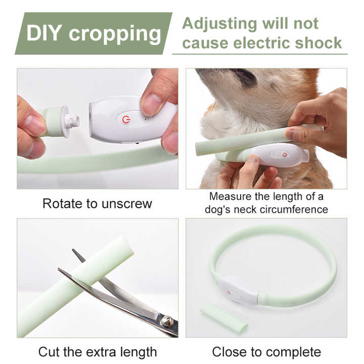 - Adjustable Design: Cuttable silicone tube and LED strip allow for a perfect fit; can be connected to create two collars.
