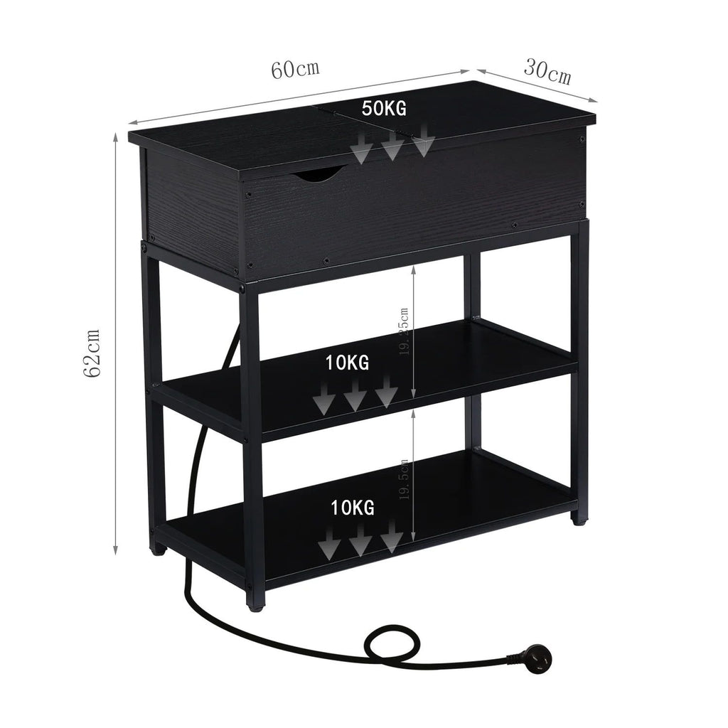 Compact 3-Tier Sofa Side Table with Powerboard, Black