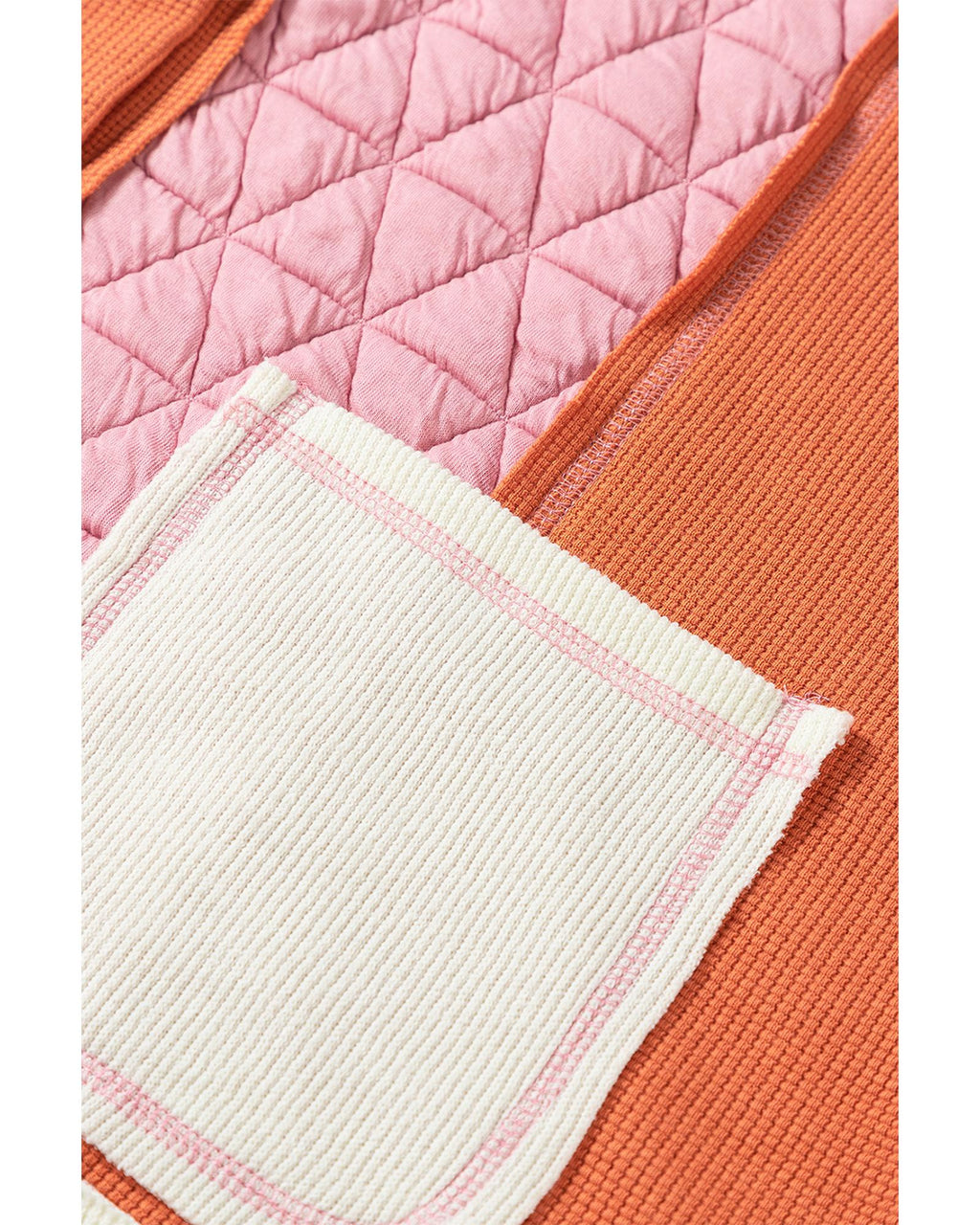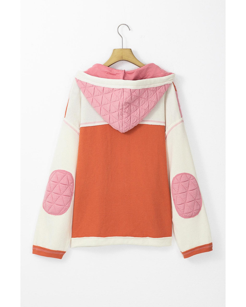 Coral Quilted Textured Patchwork Loose Fit Hooded Jacket - S