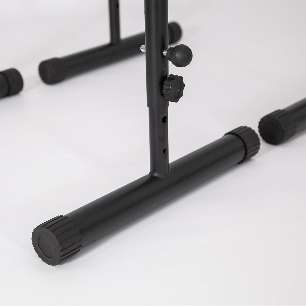 Ideal for chest dips, tricep dips, bodyweight rows, knee raises and more. Built with thick walled steel design for extra strength and durability. Designed with large Soft Grips for easier gripping and comfortable on hands, and comes with height adjustability. FEATURES - Ideal for chest dips, tricep dips, bodyweight rows, knee raises and more - 200kg Max Weight - Adjustable Height - Large Soft Grips for easier gripping and comfortable on hands - Built with thick walled steel design for extra strength and durability ASSEMBLED SIZE: 633mm x 456mm x 725mm(L x W x H)