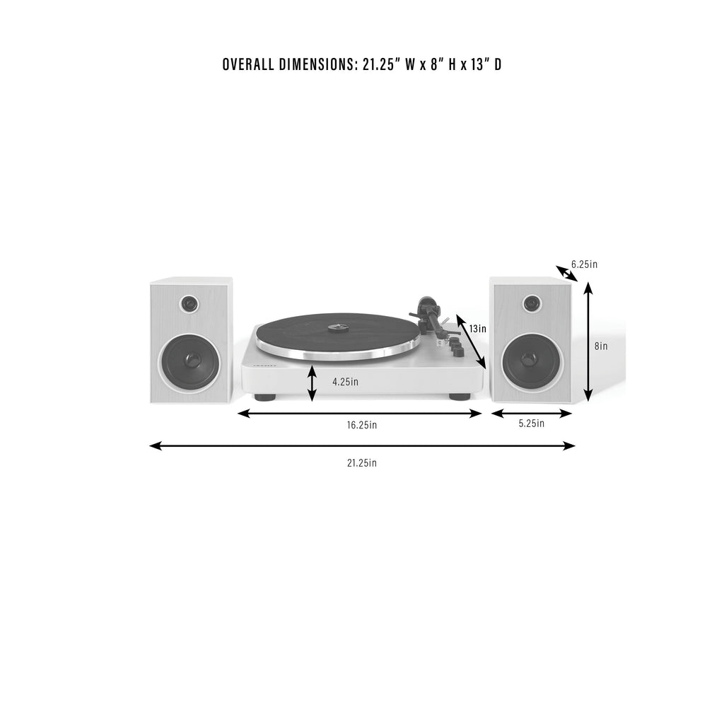 - Built-in Bluetooth® receiver, matching stereo speakers, cueing lever, and adjustable pitch control