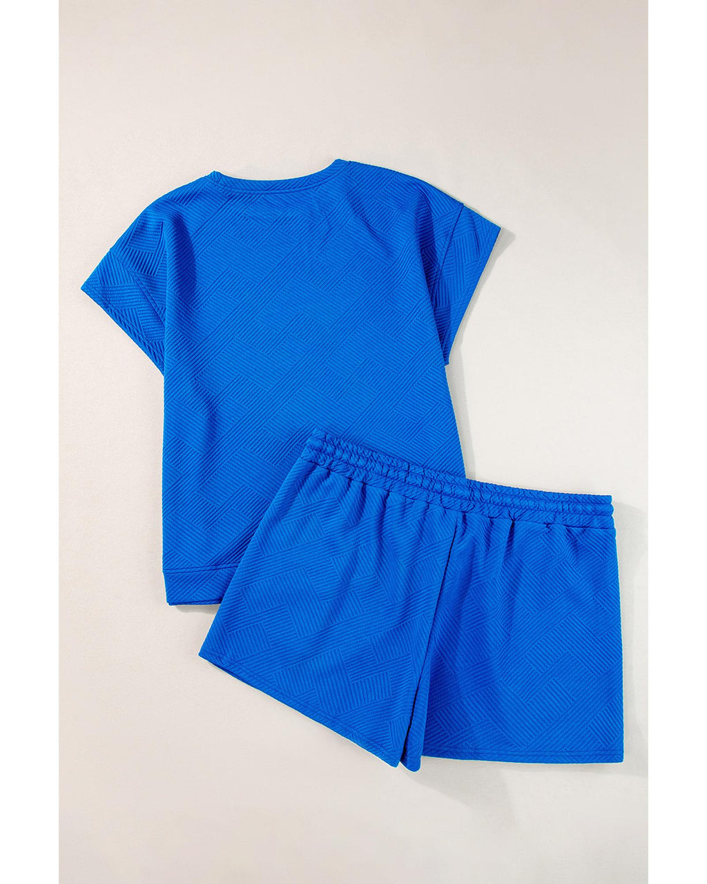 Dark Blue Plus Size Fashion Textured Short 2pcs Outfit - 1X