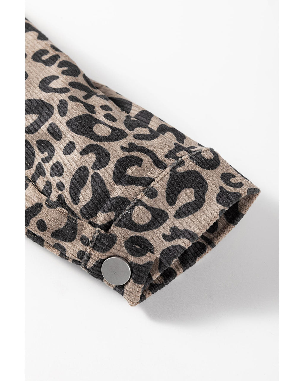 • Dark Khaki Leopard Print Corduroy Irregular Hem Buttoned Jacket