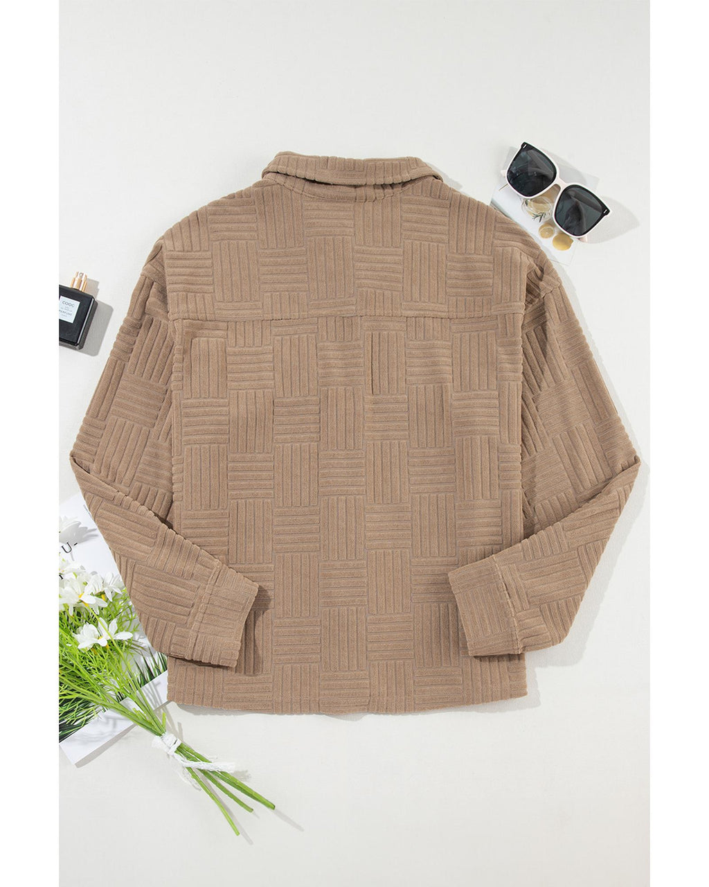 Dark Khaki Textured Chest Pocket Button-up Shacket - L