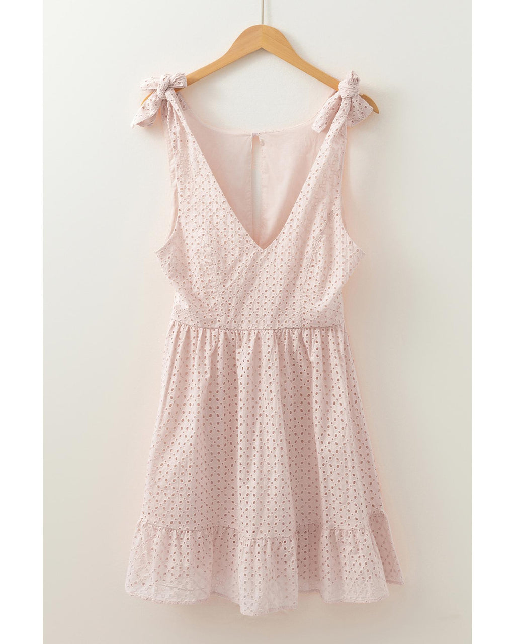 Delicacy Embroidered Eyelets Ruffled Hem Sleeveless Mini Dress - L