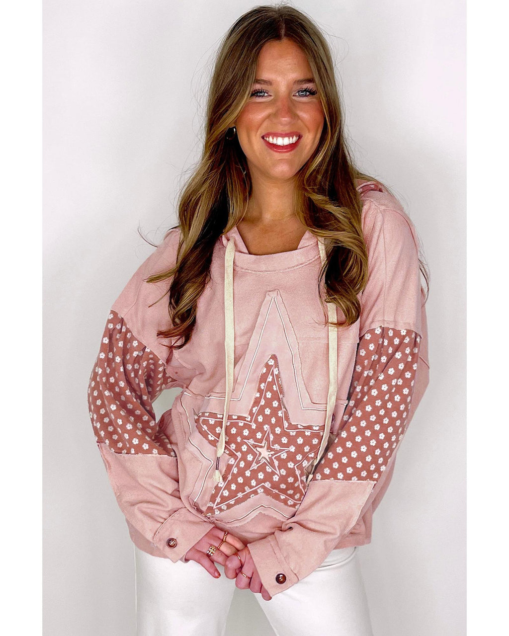 Delicacy Floral Patchwork Star Pattern Drawstring Hoodie - M