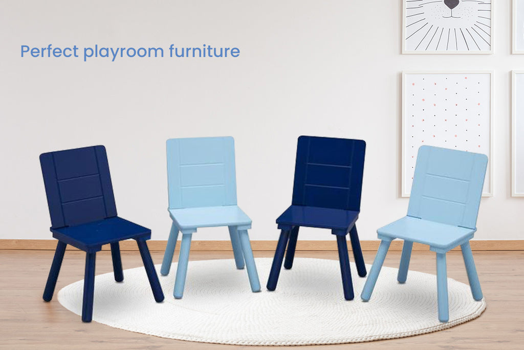 A must-have for playtime, crafting time or just about any activity, this Kids Table and Chair Set from Delta Children is oh-so sturdy and sized just right for growing children. Not only does it provide the perfect place for little ones to play but it also comes with four chairs so all their friends can share in the fun. The sleek design and contrasting colored chairs with grooved detailing on the backs effortlessly complements any décor. It’s a kids’ table that’s fit for shared spaces, playrooms, kids’ bedrooms, basically any room in the house. Constructed for some serious play, this table and chair set is made from sturdy wood for long-lasting use.