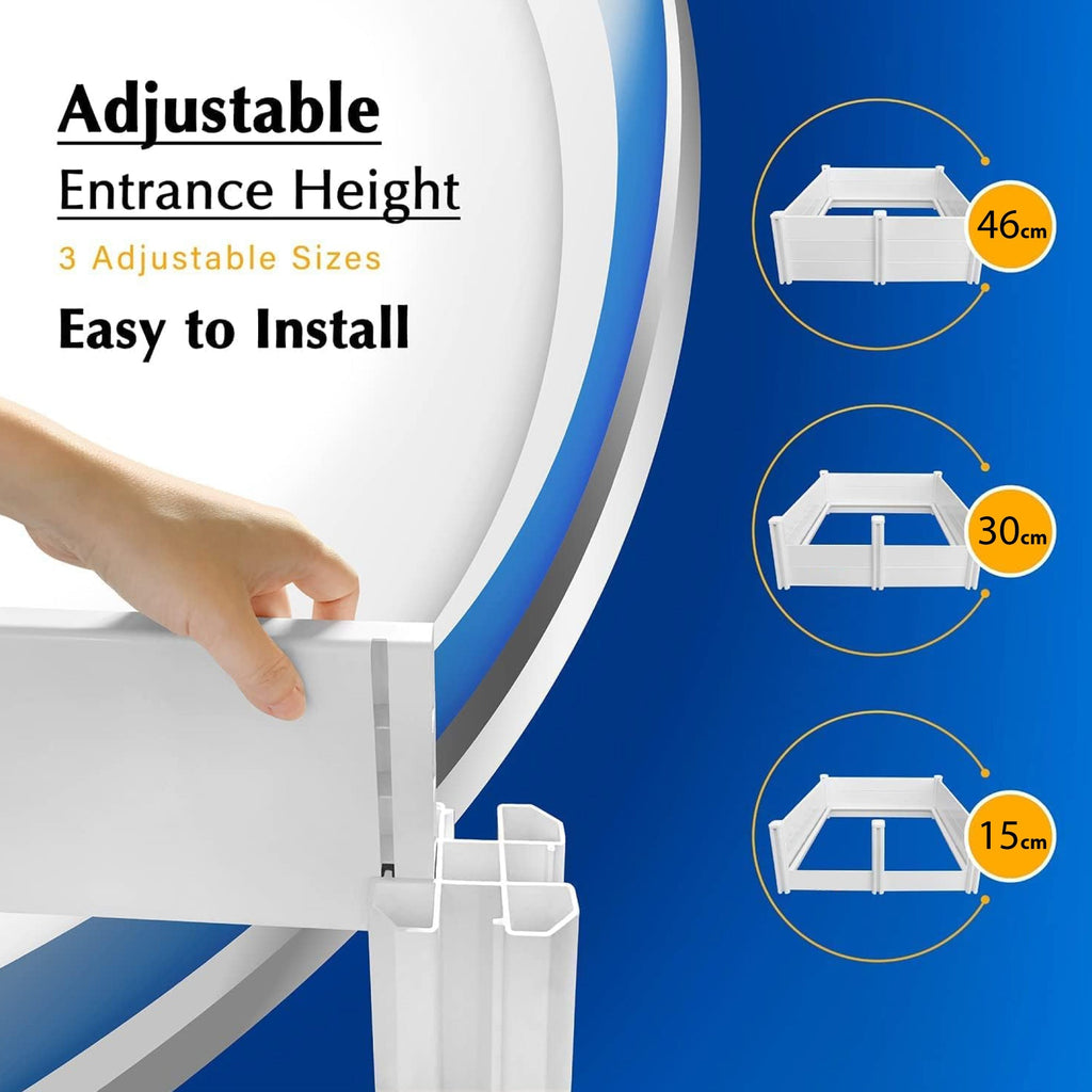 • Adjustable Entry / Exit Height: Simply add or remove short slat to adjust and control the entry and exit of the mother, while keeping the puppies safe inside. This allows for customisation according to the size of the mother or the puppies' growth stages.