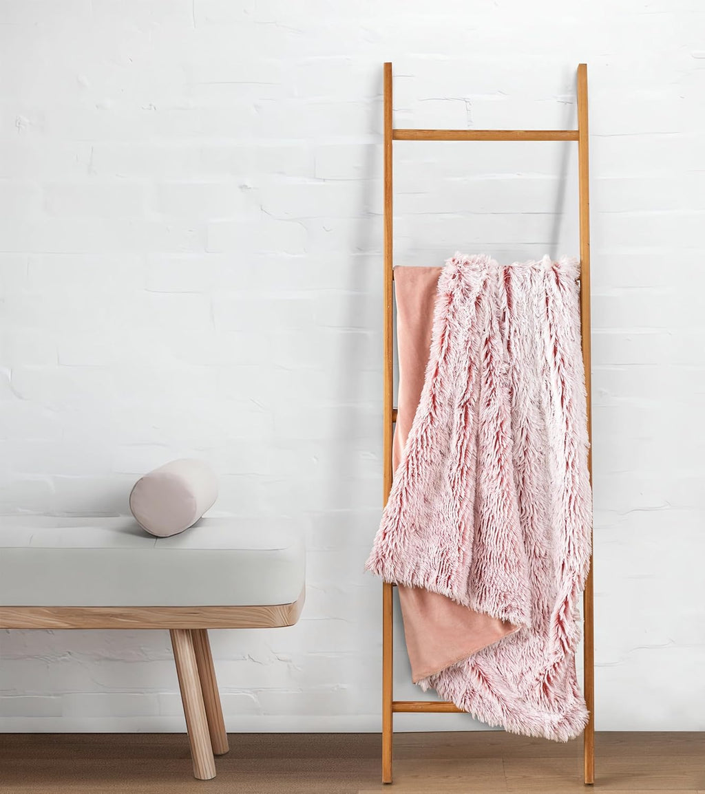 Double Sided Fx Fur Shaggy Throw Blanket - Rose