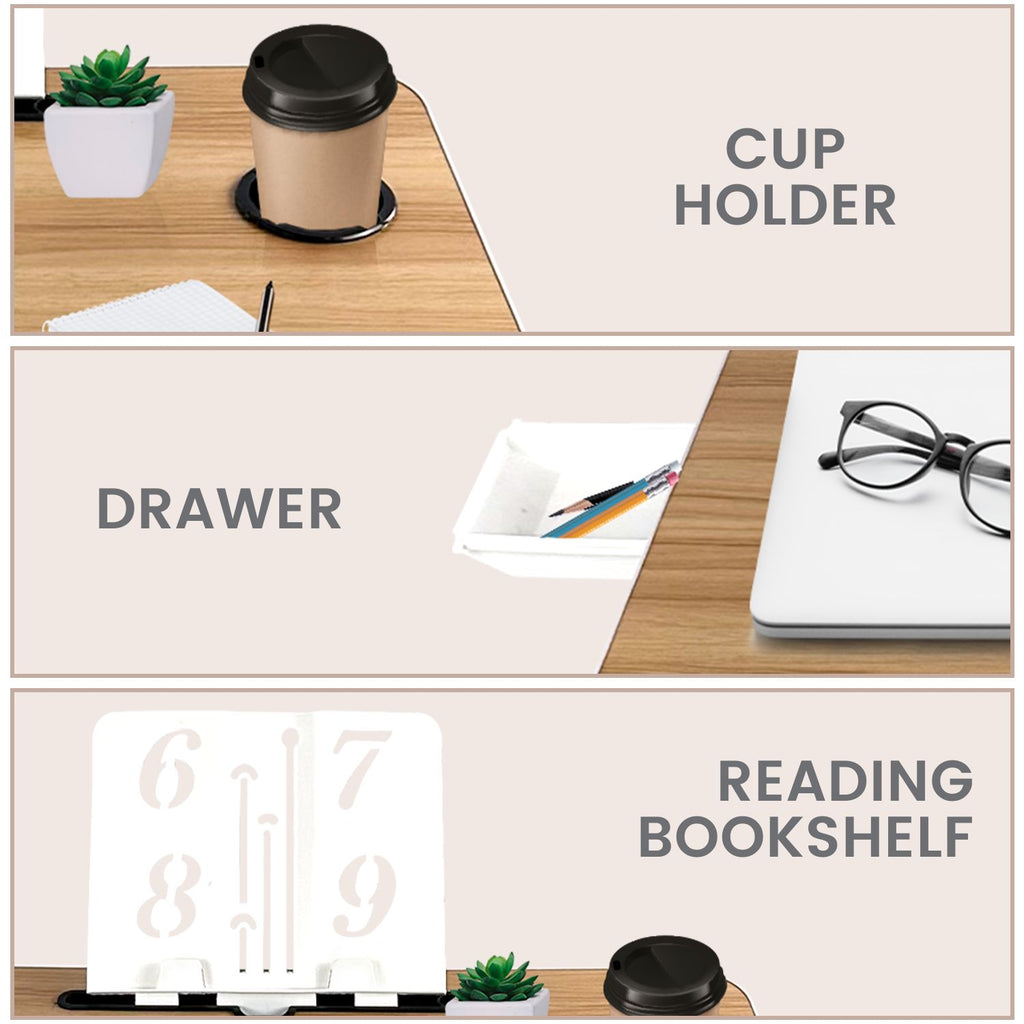 WORK SMARTER, NOT HARDER: This table lets you do everything from your cozy spot. Whether it's gadgets, books, drinks, or snacks, you can store them all in the stand, holder, drawer, and cup holder. Reach for them anytime without getting up and breaking your groove.