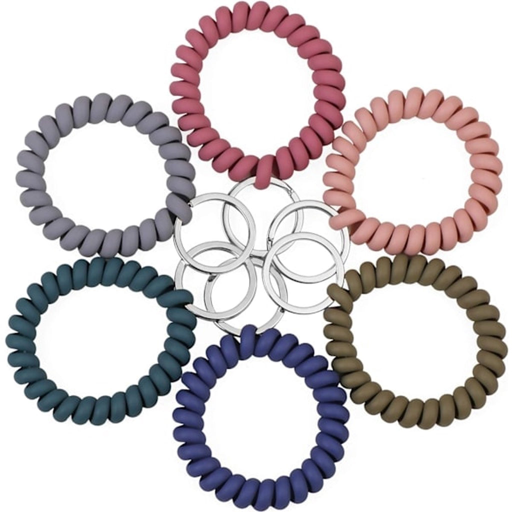 Elastic Bracelet Keychain - Flexible Spiral Bracelet Keychain - For Sauna, Gym, Swimming Pool, ID Card & Outdoor Sports 6-Pack