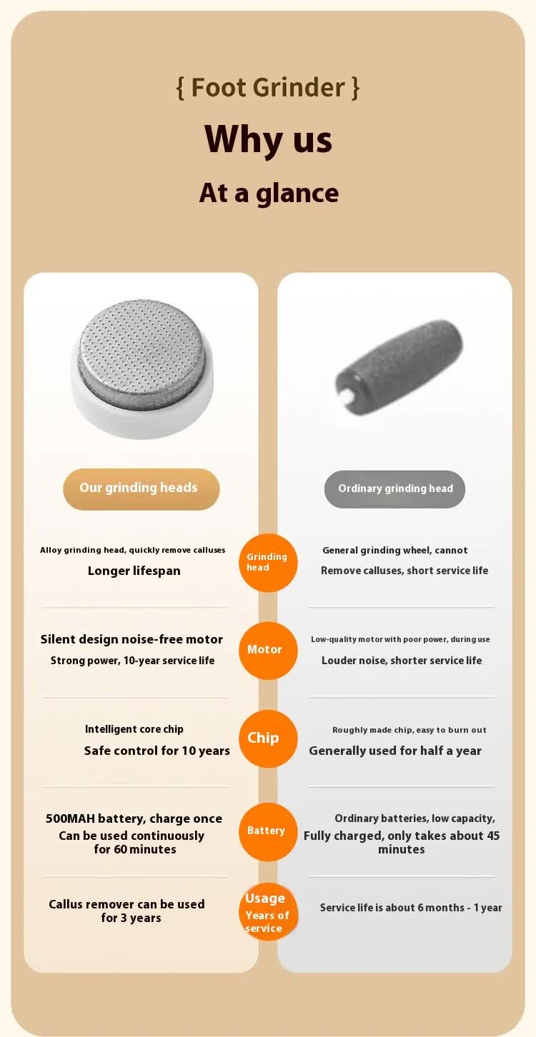 The device is incredibly user-friendly. Simply choose the appropriate grinding head, select your speed, and gently glide over dry heels and soles. It effectively addresses common foot issues like dry cracked heels, thick calluses, and rough patches. With its elegant Ivory White finish and convenient USB charging, it is a must-have addition to your personal care routine.