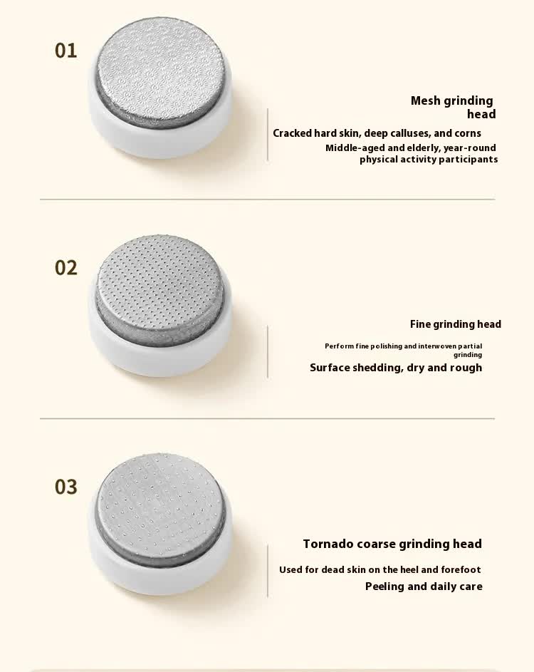 - 3 Specialised Grinding Heads: Comes with three distinct alloy heads to target different skin concerns: a Fine head for daily polishing, a Regular head for newly formed dead skin, and a Coarse head for stubborn, thick calluses.