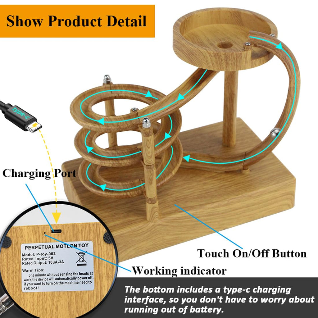 Discover the magic of physics with this elegant electromagnetic perpetual motion toya mesmerizing desktop sculpture that combines science, art, and relaxation. Crafted from high-quality wood with a natural grain finish, it features a smooth spiral track where a metal ball glides continuously using electromagnetic induction and gravity. No external power neededjust a simple touch to activate the built-in rechargeable battery, and watch as the ball moves seamlessly through its looped path. The quiet operation makes it perfect for offices, study rooms, or living spaces, offering a calming visual experience that reduces stress and sparks curiosity. Designed not only for adults but also as a fun and safe distraction for catsits gentle motion often captivates feline attention, making it an excellent interactive cat toy. This isnt just a gadget; its a piece of kinetic art that demonstrates Newtonian principles in action. Whether you're a science enthusiast, a student, or someone who enjoys unique home décor, this device adds both beauty and wonder to your space. Its compact size ensures it fits on any desk or shelf without taking up too much room. Ideal as a thoughtful gift for teachers, engineers, pet owners, or anyone who appreciates clever design and scientific wonder.
