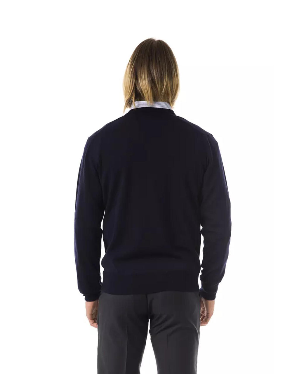 Embroidered V-neck Sweater in Extrafine Merino Wool XS Men