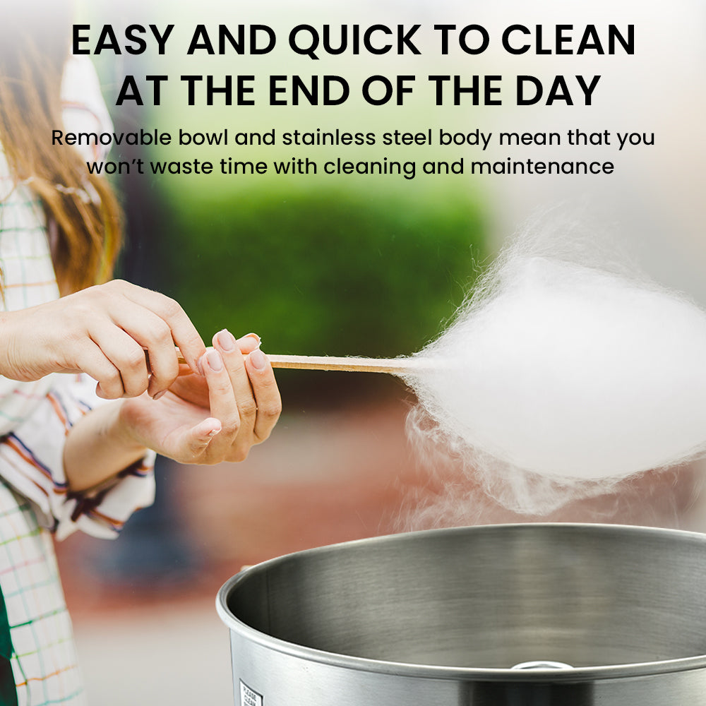 With the universal appeal of fairy floss, it’s an easy sell at community events, fairs, and markets. With its robust design and simple operation it’s also an option to hire it out for kids parties. The Eurochef has all the features you need. The handy storage drawer ensures that your supplies are always within reach. Its fast spinning head holds a generous 114 grams of floss sugar so you can avoid frequent refilling, and its removable stainless steel bowl makes cleaning and maintenance easy at the end of the day. Secure safety latches and rubber feet keep the bowl and machine securely in place to minimise vibration!